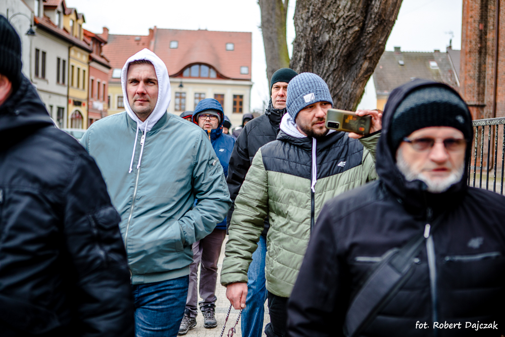O godzinie 9:40 Wojownicy Maryi i mieszkańcy ruszyli z pod kaplicy przy Kościele (ul. Górska) w plenerową procesję różańcową ulicami miasta z różańcami w dłoniach, z wizerunkiem NMP (Kecharitomene), krzyżem pasyjnym Pana Jezusa.