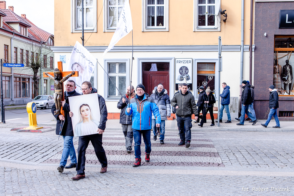 O godzinie 9:40 Wojownicy Maryi i mieszkańcy ruszyli z pod kaplicy przy Kościele (ul. Górska) w plenerową procesję różańcową ulicami miasta z różańcami w dłoniach, z wizerunkiem NMP (Kecharitomene), krzyżem pasyjnym Pana Jezusa. Po powrocie, w salce przy kościele odbyła się konferencja, której tematem była Apokalipsa, którą poprowadził brat Kazimierz.